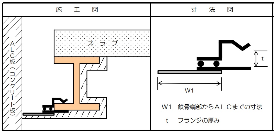 ※t(鉄骨の厚み)とW1(ALCとの隙間)をご指示ください。