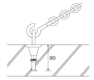 • アイボルトをネジ込後、足場チェーンを引っ張ります。